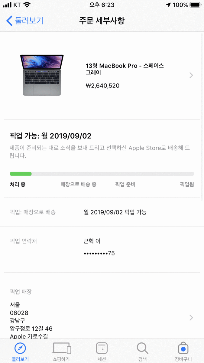 픽업 관련 알림을 애플스토어 직원에게 보여주니 10분 정도 기다려달라고 하셨습니다.