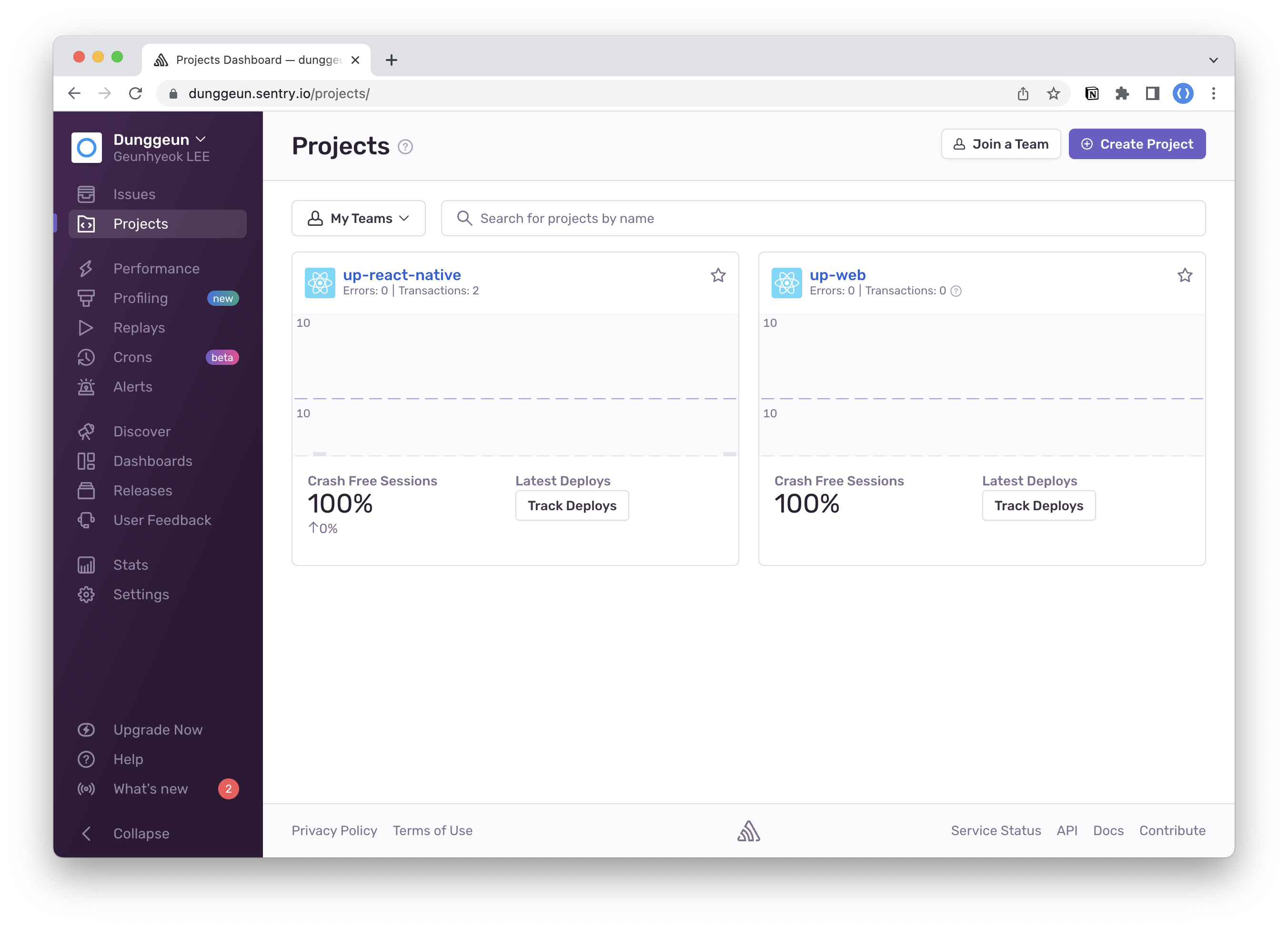 배포 이후 장애 대응을 위해 Sentry 연동도 진행했다. 물론 Native(Android, iOS) 그리고 웹(Web) 모두.