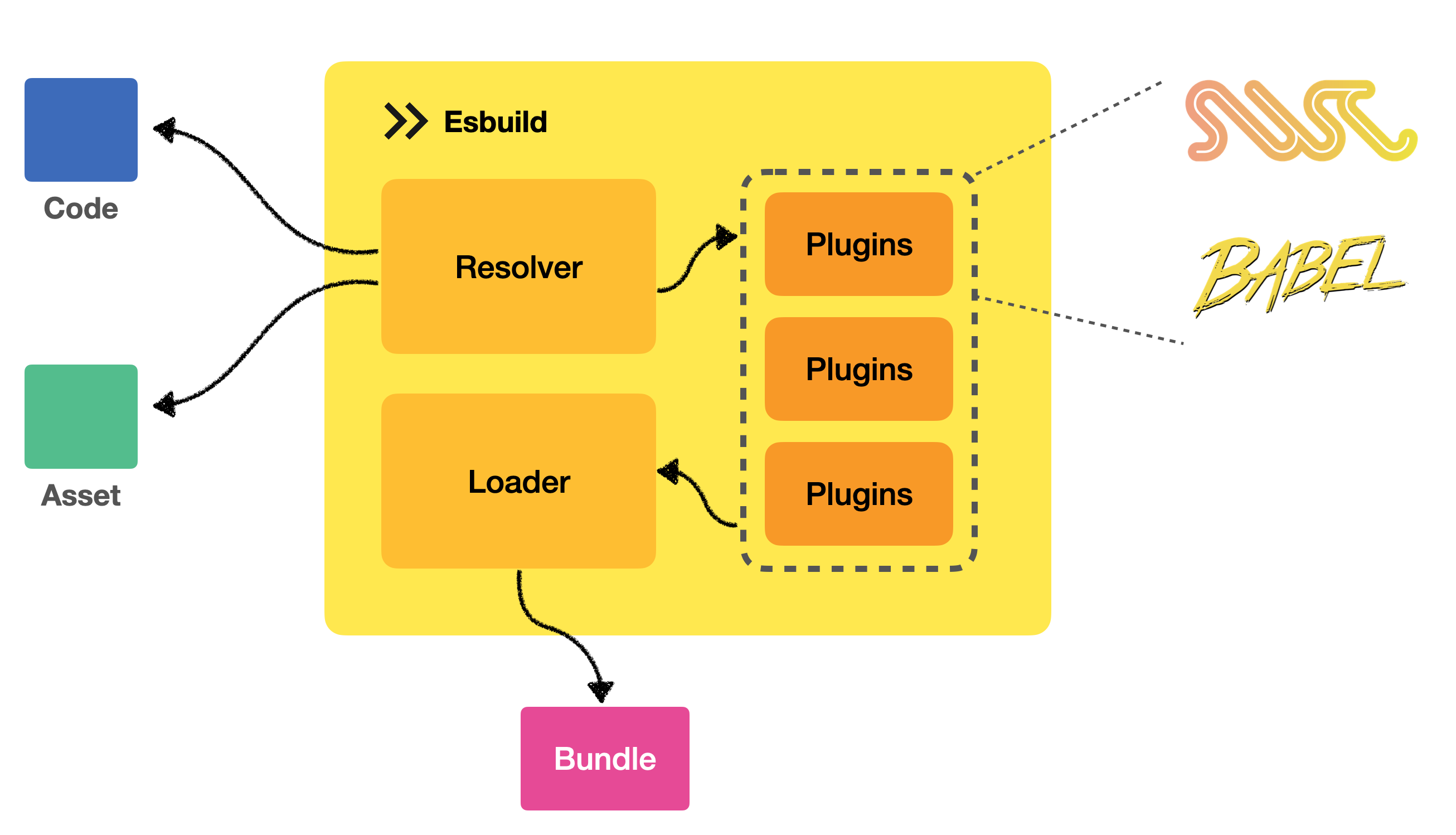소스코드와 에셋(이미지)등의 파일은 esbuild를 통해 로드하고, 코드 변환이나 에셋 전처리 등의 여러가지 커스텀 작업들은 플러그인으로 구현하고자 한다.