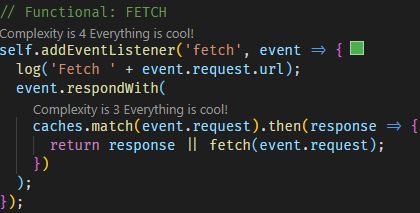 위 코드를 간단히 정리하자면 fetch를 요청한 응답 객체가 캐시에 저장되어있으면 캐시에 있는 응답 객체를 전달하고,